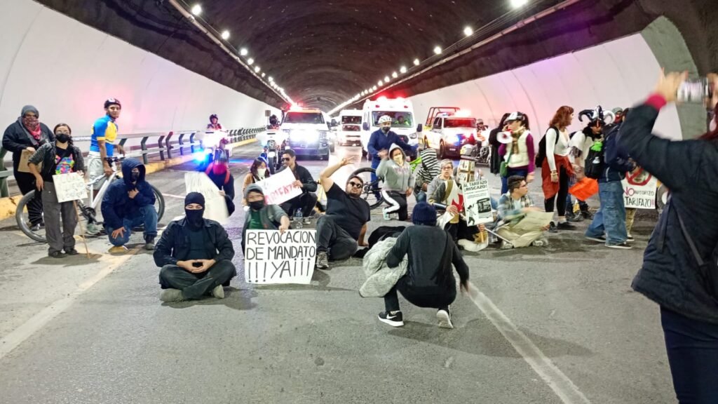 Entonando la consigna “¡No al tarifazo!” y “al pueblo no le alcanza para un Tesla”, un grupo de usuarios del transporte urbano bloquearon avenidas importantes de los municipios de Monterrey y San Pedro.