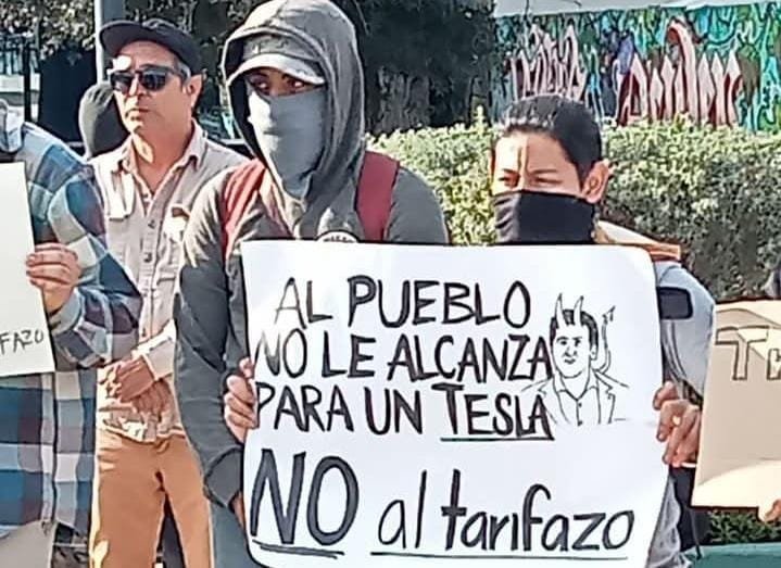 Al grito de “Samuel, cab….súbete al camión” , “El pueblo se cansa de tanta pinche rata” y “No al tarifazo”, un grupo de manifestantes exigen este domingo que baje el precio del transporte, como lo establece la crónica del periodista Miguel Ángel Arritola en sus redes sociales.