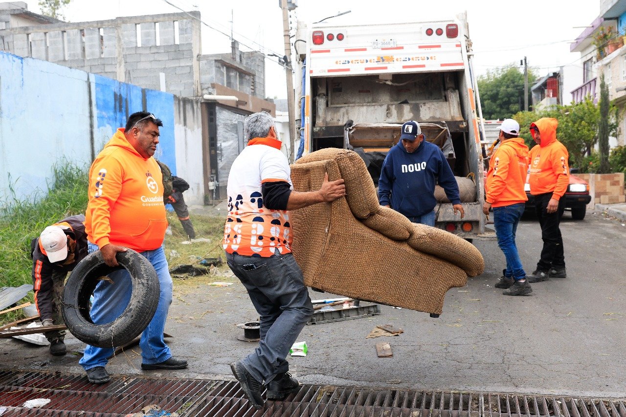 Equipados con las unidades nuevas, personal de la Secretaría de Servicios Públicos de Guadalupe eliminó focos de infección en la colonia Eduardo Caballero, con una brigada integral de limpieza.