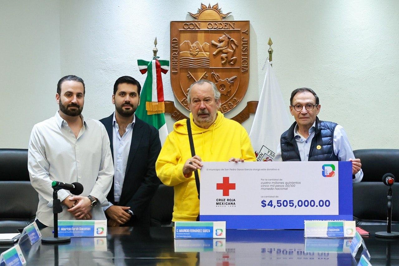 Mauricio Fernández Garza, Alcalde de San Pedro Garza García, entregó a la institución un donativo de 4.5 millones de pesos, y agradeció la apertura de la Cruz Roja para ampliar su atención, que actualmente asciende a las más de 10 mil servicios anuales.