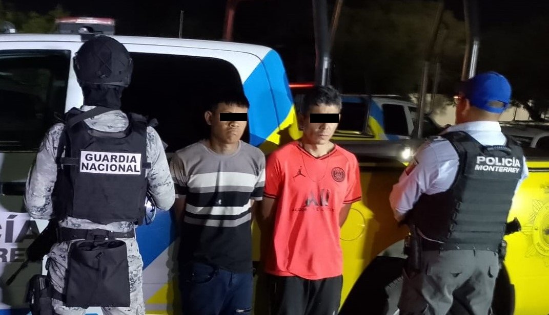 Dos hombres fueron detenidos por oficiales de la Policía de Monterrey en conjunto con personal de la Guardia Nacional, luego que presuntamente intentaran a bordo de una motocicleta, robarle su mochila a un peatón, en el centro de la ciudad, siendo captados por cámaras de monitoreo del C4.