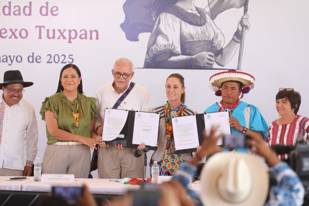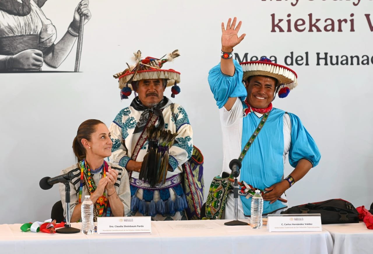 “Su lucha no ha sido en vano, hoy se refleja en la reforma constitucional que reconoce sus derechos y también hoy, les da este gran reconocimiento como sujetos de derecho público”, precisó la secretaria Montiel Reyes, al participar en el Plan de Justicia del Pueblo Wixárika: Restitución de Tierras a la Comunidad de San Sebastián Teponahuaxtlán y su anexo Tuxpan.