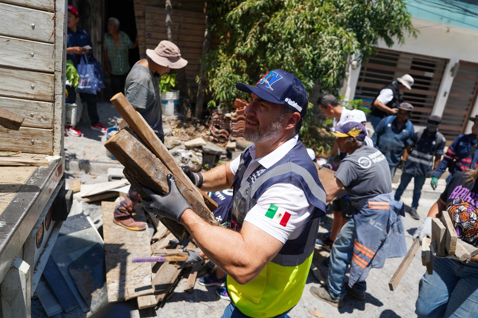 El alcalde Adrián de la Garza supervisó y apoyó en los trabajos de retiro de 20 toneladas de cacharros casa por casa.