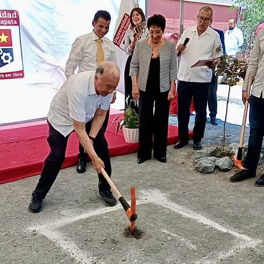 El Secretario General de Gobierno, Miguel Ángel Flores Serna dio el primer ‘zapapicazo’ de lo que será la Plazoleta y Explanada de la Preparatoria y Universidad Emiliano Zapata (UNEZ).