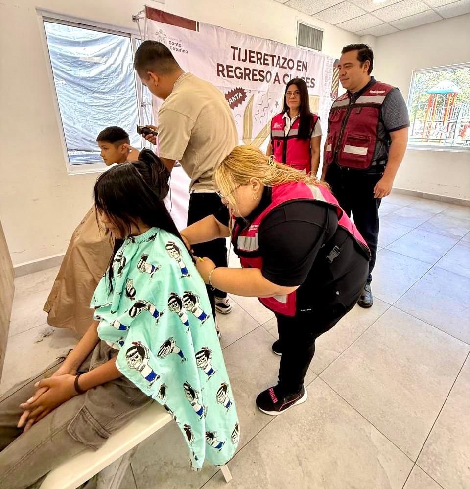 Cientos de niños se beneficiaron cortes de cabello gratuitos a través del programa “Tijeretazo en este Regreso a Clases” que brindó el Gobierno de Santa Catarina en apoyo a la economía familiar.