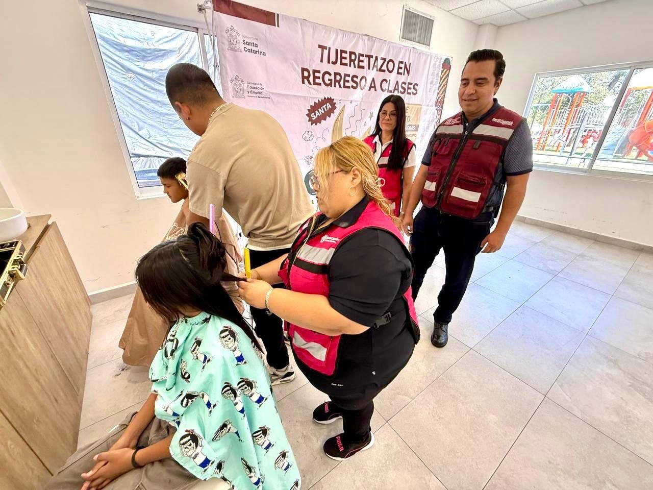 Cientos de niños se beneficiaron cortes de cabello gratuitos a través del programa “Tijeretazo en este Regreso a Clases” que brindó el Gobierno de Santa Catarina en apoyo a la economía familiar.