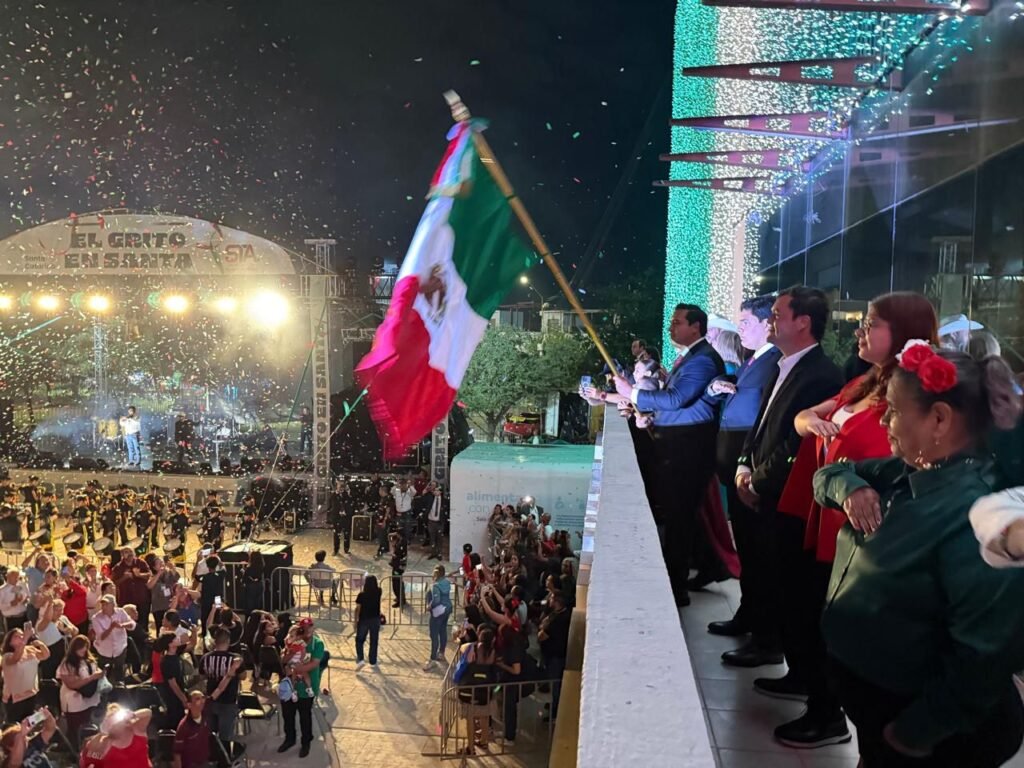 El Alcalde de Santa Catarina, Jesús Nava Rivera, encabezó el tradicional Grito de Independencia, que se realizó en la explanada de la Torre Administrativa.