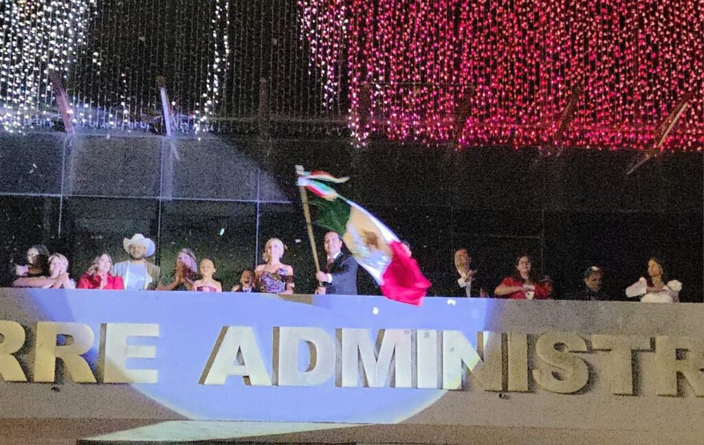 Al mismo tiempo, las familias ondearon banderas mexicanas y disfrutaron de una lluvia de papeles con colores en verde, blanco y rojo y pirotecnia fría.