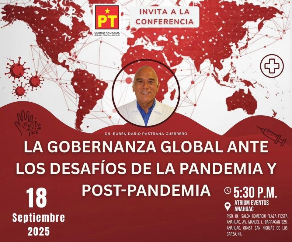 Para conocer resultados del Covid-19 y responder a futuras crisis sanitarias, el Partido del Trabajo llevará a cabo la Conferencia “La gobernanza global ante los desafíos de la pandemia y la post-pandemia”.
