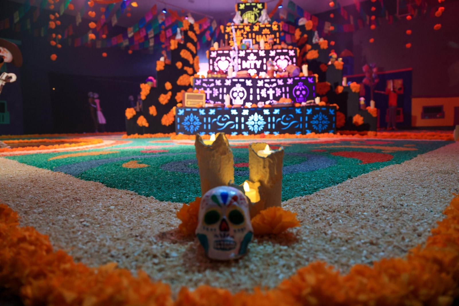 La Dirección de Turismo es Cultura, en colaboración con la Facultad de Artes Visuales de la Universidad Autónoma de Nuevo León, instaló una ofrenda de grandes dimensiones en la modalidad inmersiva.