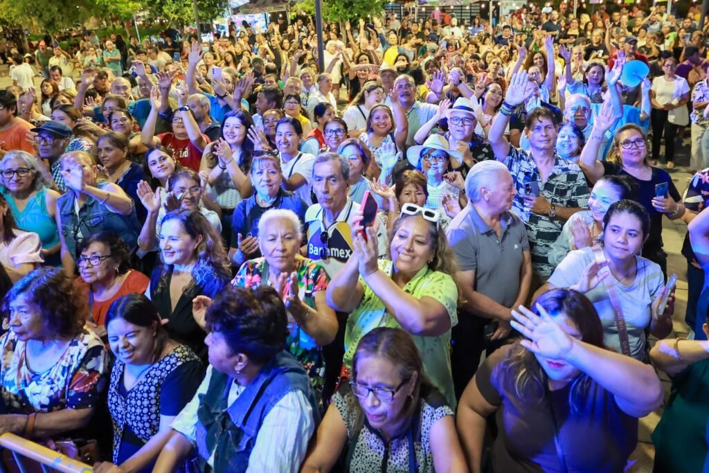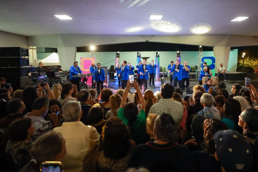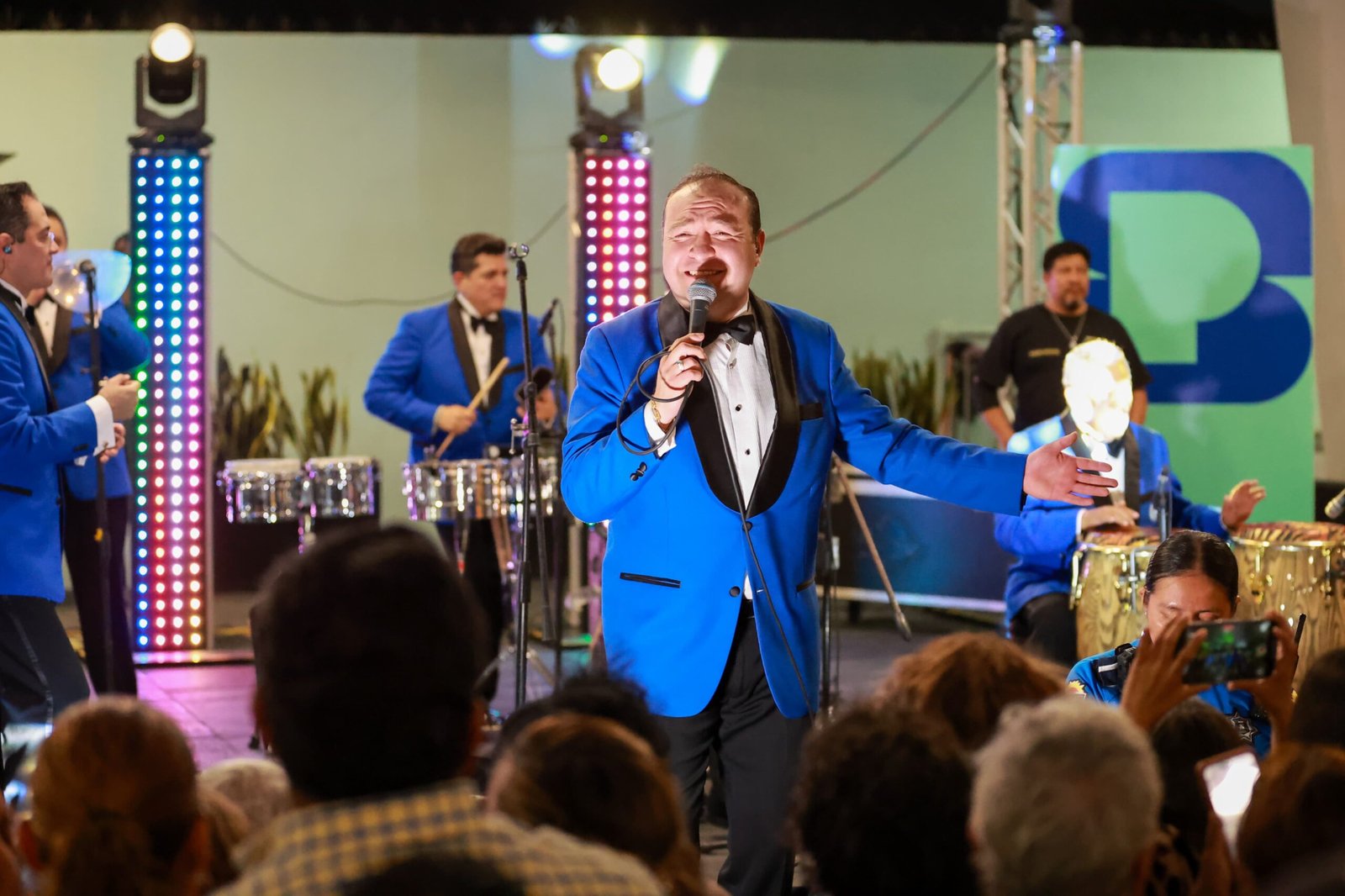 El ambiente festivo se encendió con los éxitos que han marcado generaciones, como “La boa”, “Perfume de gardenias” y “Luces de Nueva York”, que pusieron a bailar y cantar a unas 3 mil personas de todas las edades, de acuerdo con estimaciones de Protección Civil de San Pedro.
