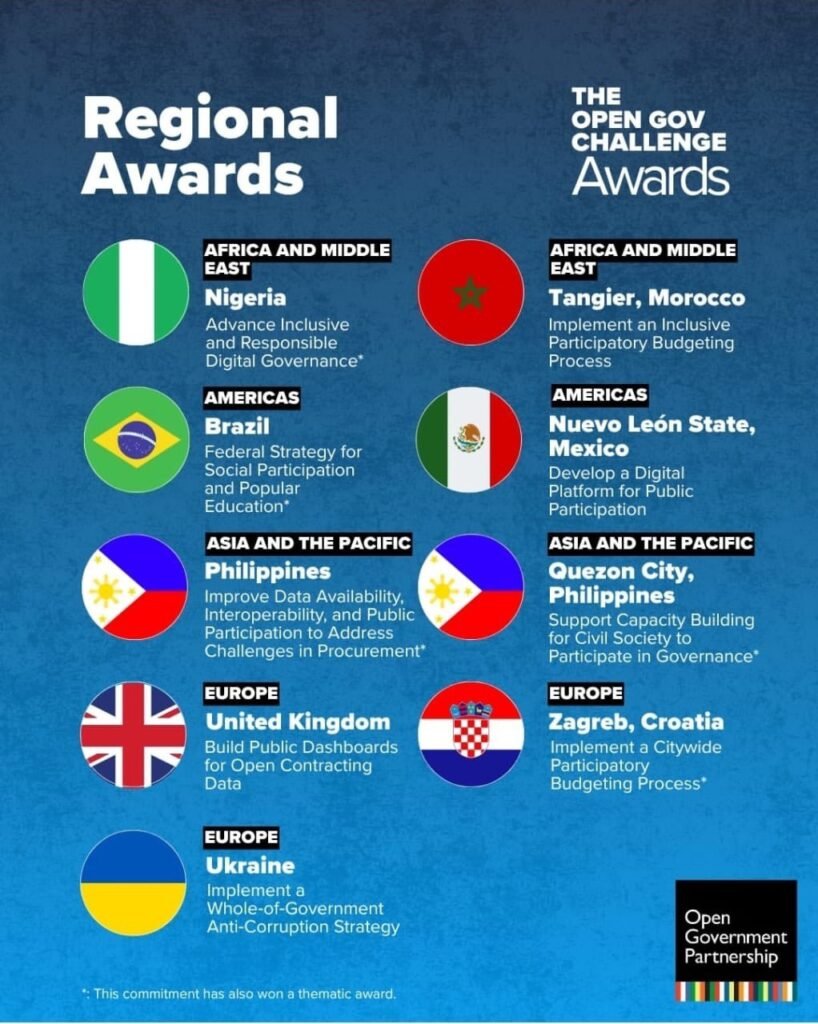 Los premios reconocen iniciativas sobresalientes presentadas ante el desafío global de Gobierno Abierto, transparencia y participación ciudadana.