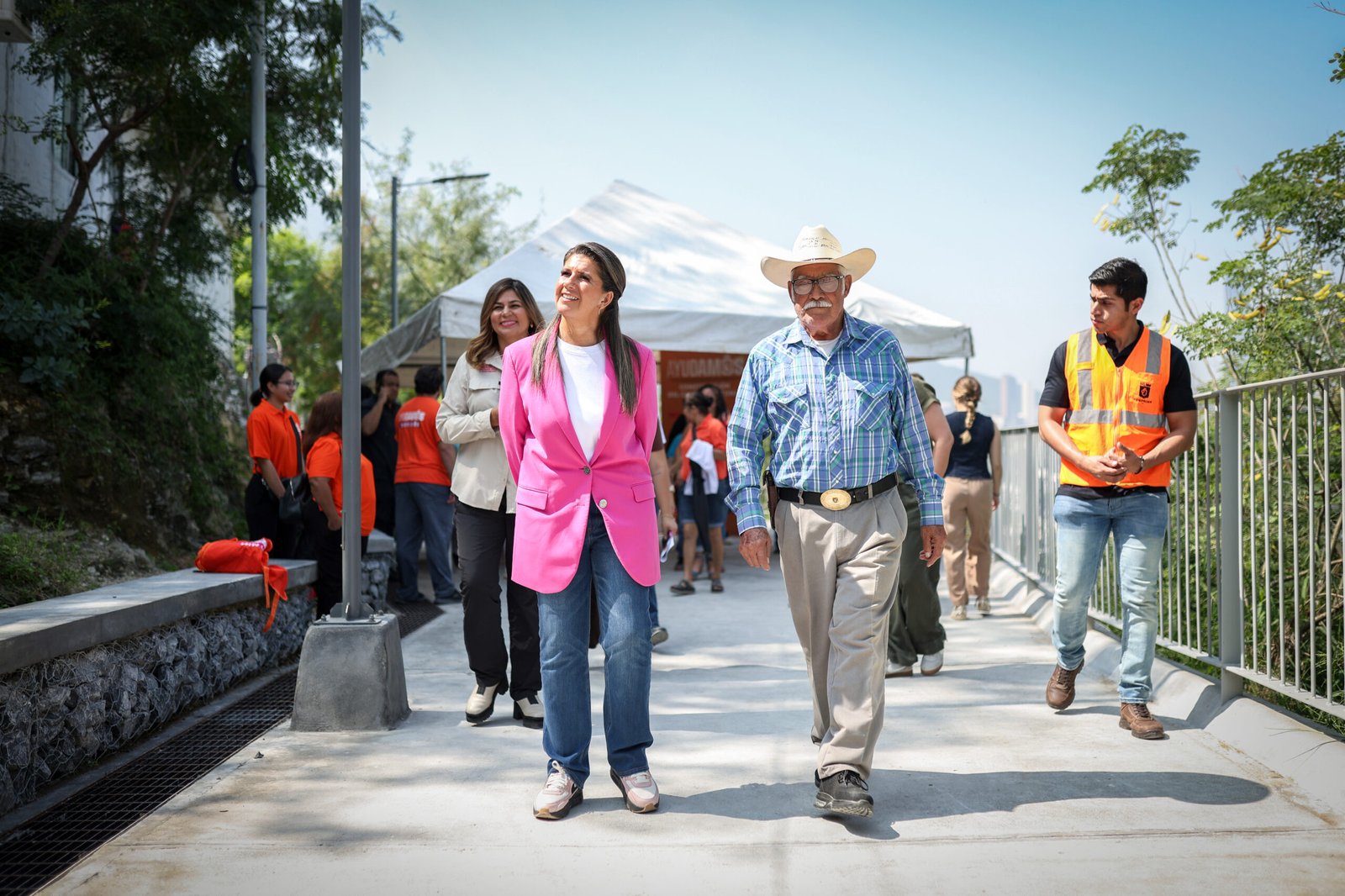 “Esto es parte de un plan que se hizo en conjunto con el Distrito Tec y especialistas en la materia, que nos ayuda a ordenar el desarrollo de la zona. Un aplauso a FIDEPROES, que aún en días lluviosos y en un contexto complejo para poder construir este camino lineal de más de 150 metros, lo lograron, muchas felicidades”, dijo Martha Herrera.