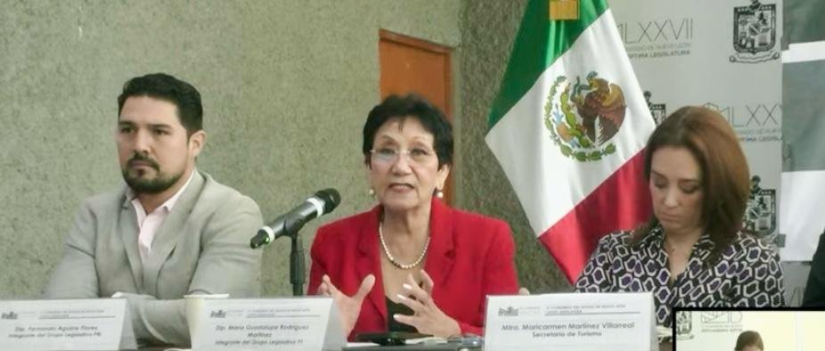 La diputada María Guadalupe Rodríguez Martínez, a nombre del presidente de la Comisión, diputado Jesús Alberto Elizondo Salazar, presentó los ejes de la iniciativa promovida por el Consejo Consultivo Ciudadano de la Secretaría de Turismo del Estado.