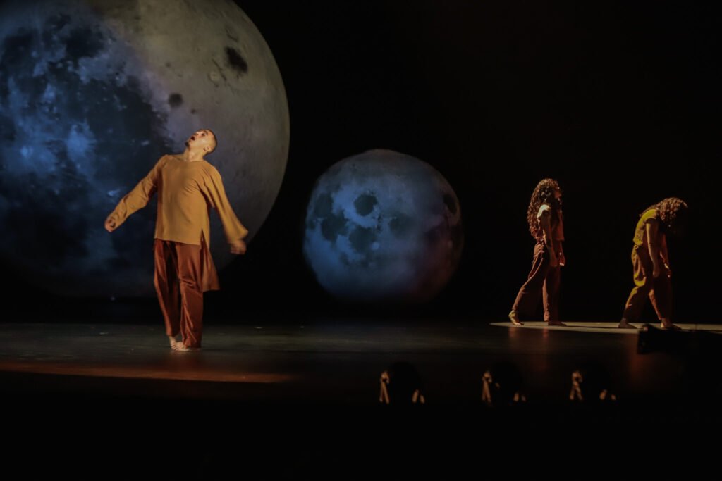El cuerpo, el sonido y el espacio son tres elementos indispensables en esta presentación, que sumerge al público en un diálogo íntimo sobre la existencia humana. Siete bailarines desarrollan una metáfora sobre la vida, acompañados por la cercanía imperturbable de la luna como testigo de todas las acciones.