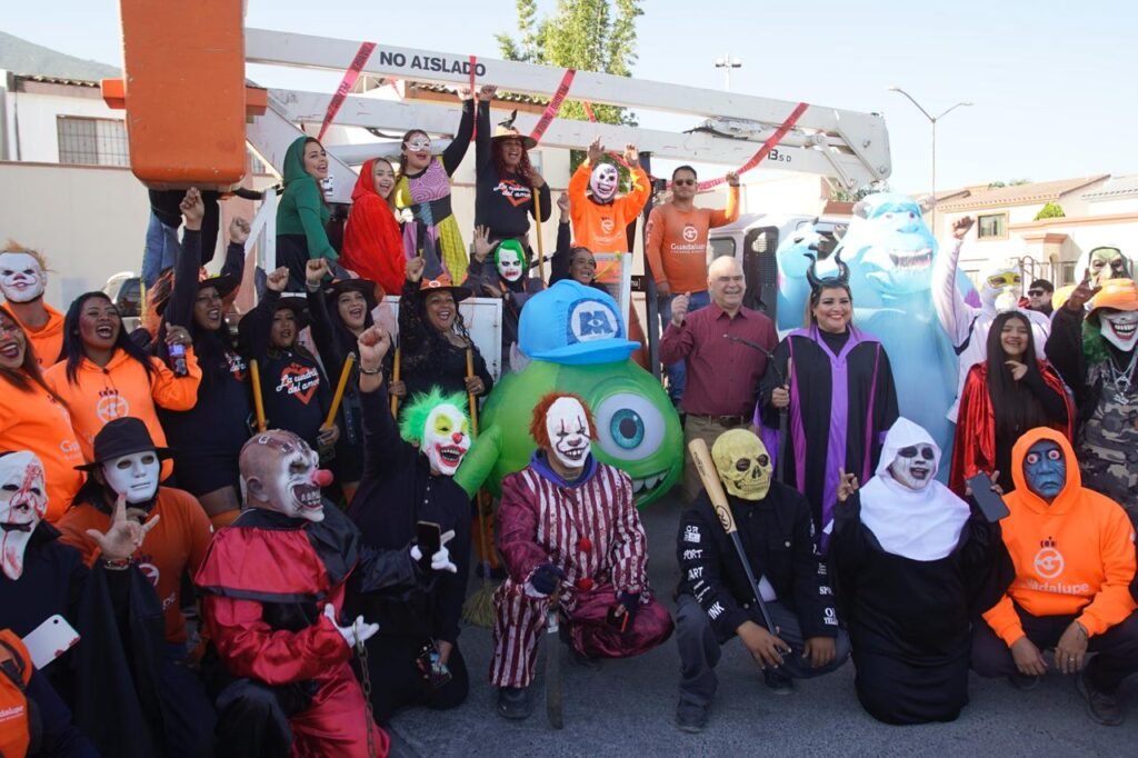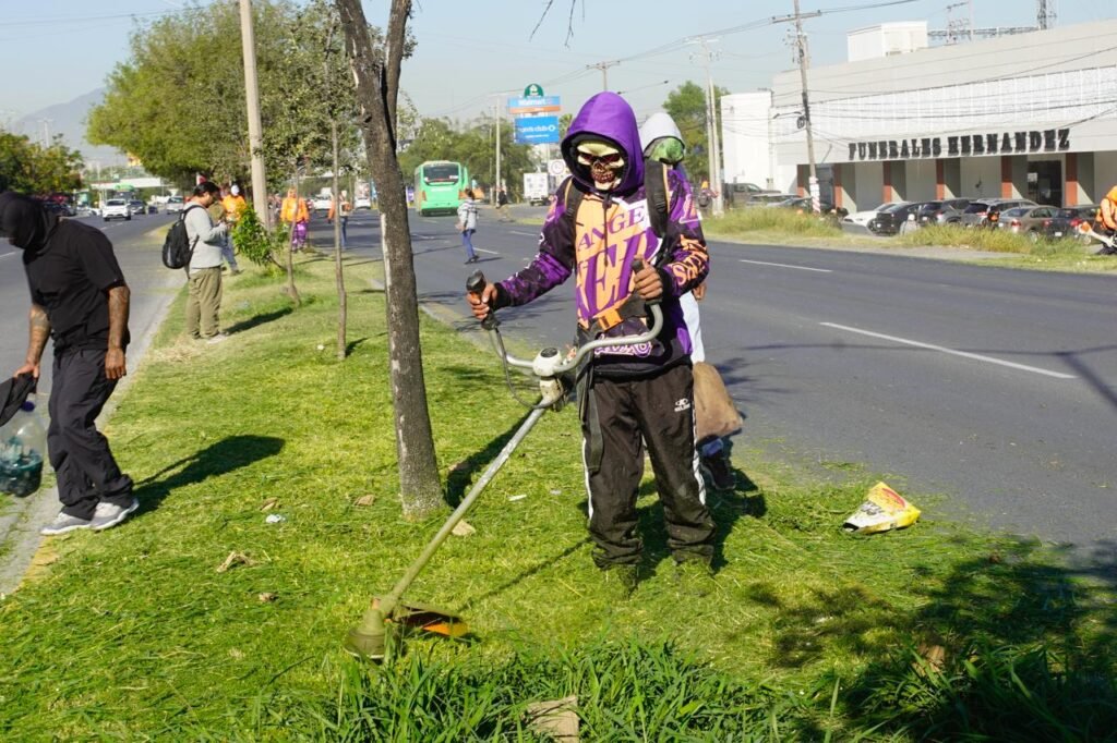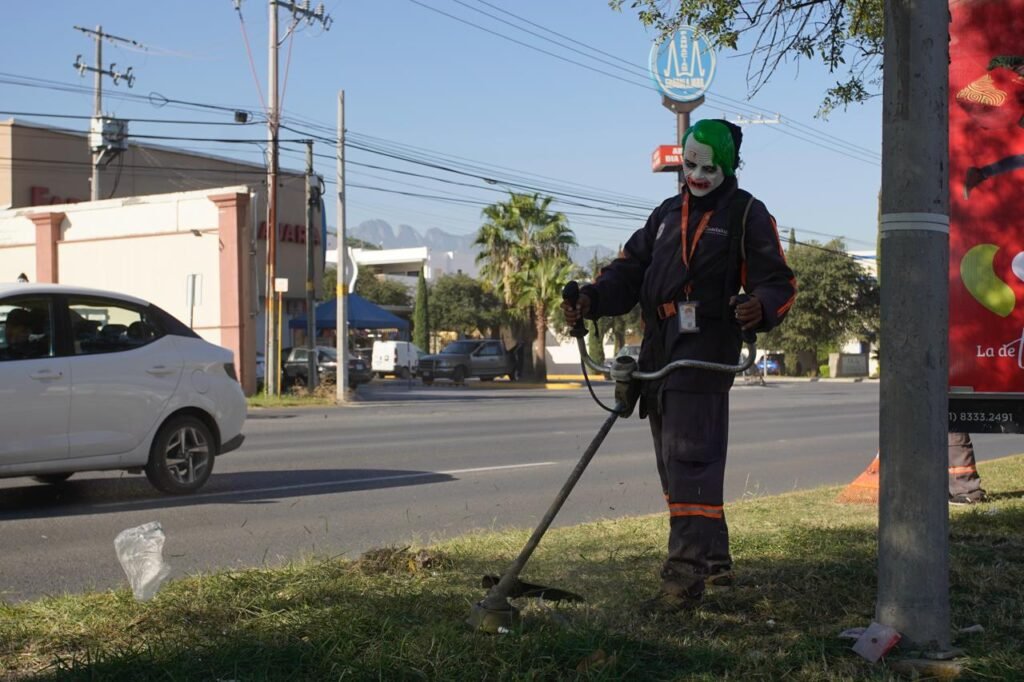 Ataviados con disfraces de monstruos y personajes de terror, personal de limpia del Municipio de Guadalupe emprendió labores de deshierbe y poda en avenidas principales de la ciudad, disfrutando a su manera el Día de Halloween