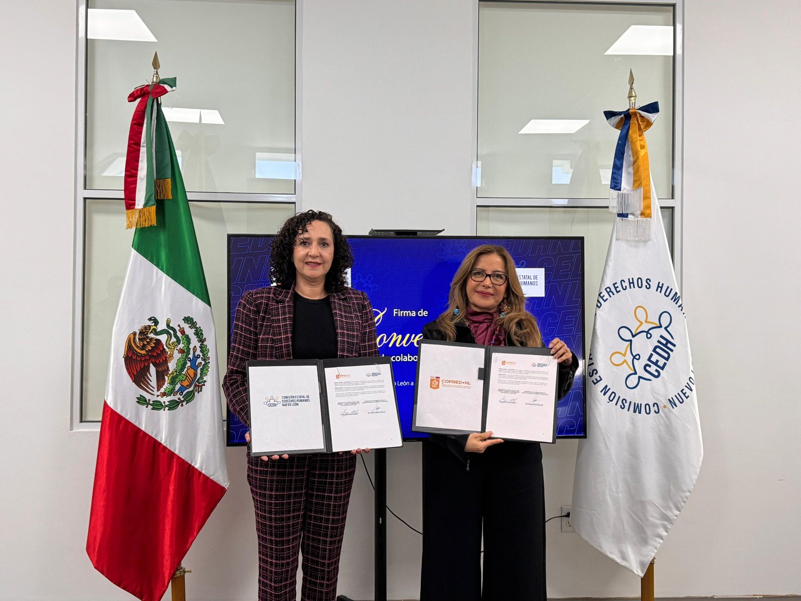 La Comisión Estatal de Derechos Humanos del Estado de Nuevo León celebró un Convenio General de Colaboración con el Consejo para Prevenir y Eliminar la Discriminación en Nuevo León, con el propósito de sumar esfuerzos institucionales para avanzar, de manera conjunta, hacia un Nuevo León justo, incluyente y libre de toda forma de discriminación.