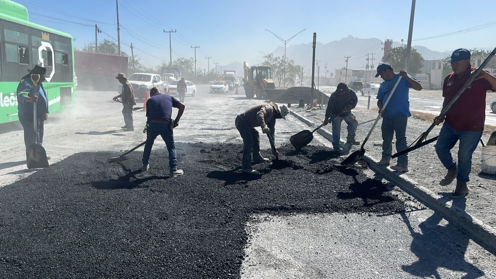 Las cuadrillas de la Secretaría de Servicios Públicos aplicaron 21 toneladas de carpeta asfáltica, cubriendo un área de 400 metros cuadrados al largo de esta importante vialidad.