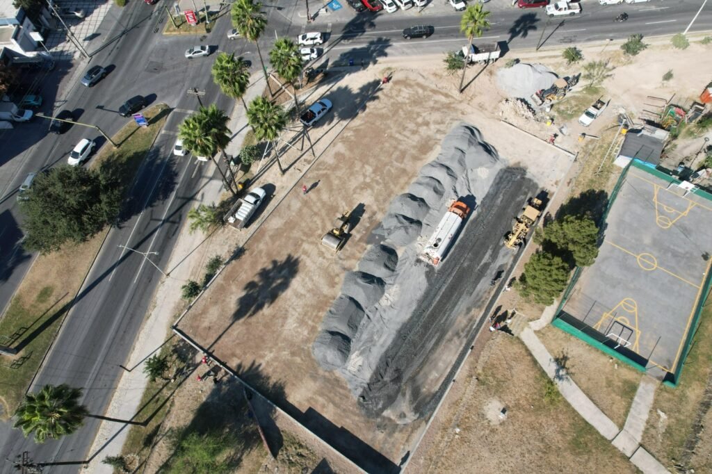 El alcalde Adrián de la Garza supervisó la mañana de este jueves la construcción de una nueva cancha de fútbol 7 y la rehabilitación del parque en la colonia Colinas de San Jerónimo.