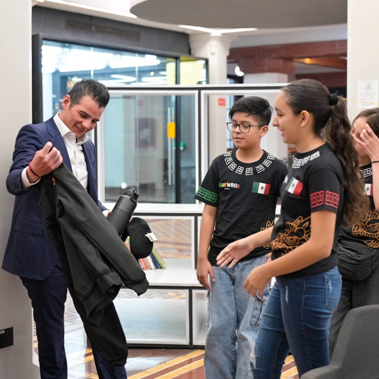 El Secretario General de Gobierno, Miguel Ángel Flores Serna, donó su sueldo a integrantes de NEOBIN, quienes gracias a su proyecto que separa residuos, representarán a México en el Mundial de Robótica en Singapur.