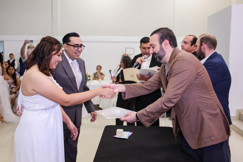 El Municipio de San Pedro Garza García celebró una ceremonia de Matrimonio Colectivo en la que 20 parejas formalizaron su unión ante un juez del Registro Civil, acompañadas por el Alcalde Mauricio Farah y la Secretaria del Ayuntamiento, Mercedes Zorrilla, quienes asistieron como testigos de honor.