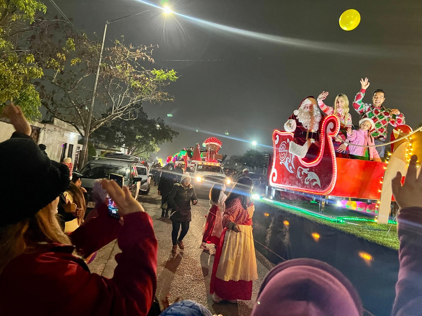 Alrededor de 2 mil de familias disfrutaron del desfile encabezado por el Alcalde Jesús Nava Rivera, su esposa Paola García Yves y sus hijos Alex, María Paola y Oliver, donde el tradicional trineo con Santa Claus, El Grinch, los monos de nieve, entre otros personajes llevaron alegría a los asistentes.