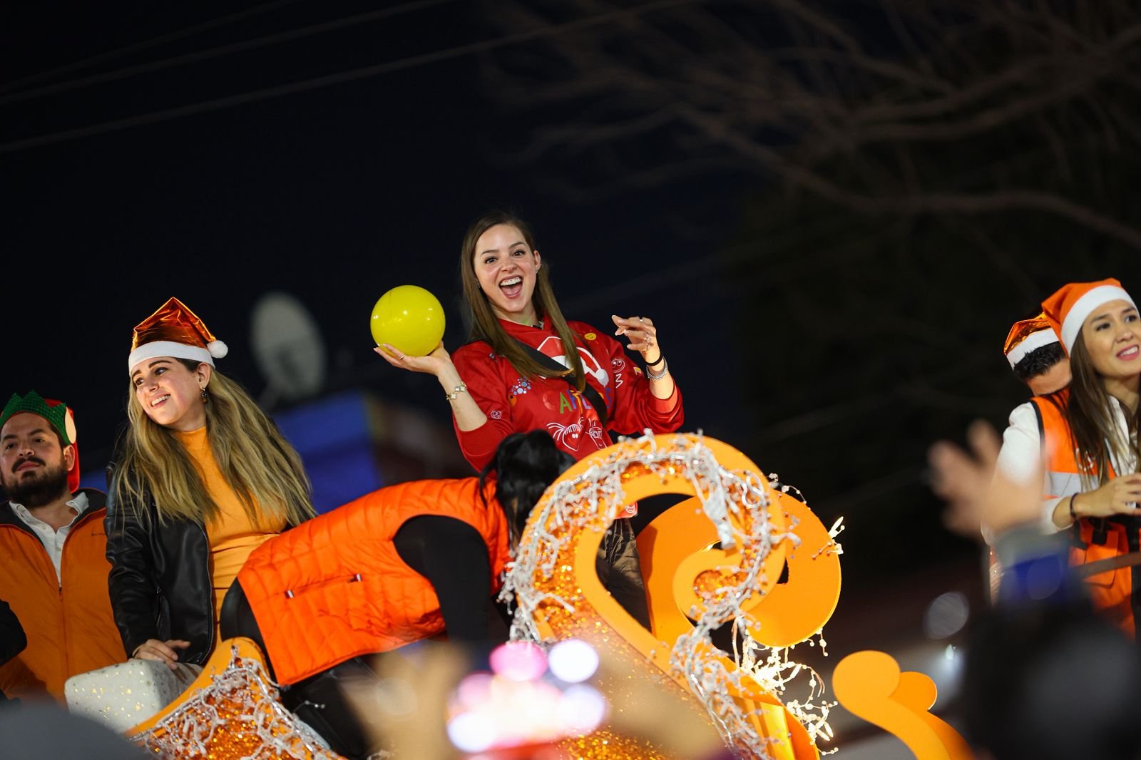 El evento estuvo encabezado por la Titular de AMAR a Nuevo León, Mariana Rodríguez, quien iba a bordo de un carro alegórico con un trineo, desde el cual saludó a las familias nicolaítas y compartió sorpresas a los asistentes.