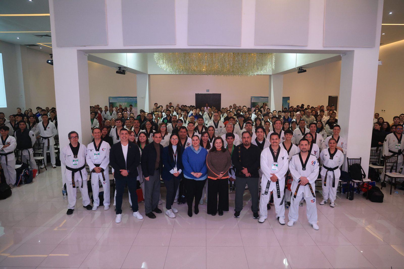 En el marco del Congreso de Cintas Negras, dirigido a maestros de TaeKwonDo; DIF Nuevo León bajo la Dirección General de Gloria Bazán, a través de su Centro de Rehabilitación y Educación Especial (CREE) y de la Subdirección de Inclusión Laboral para Personas con Discapacidad, impartió un Taller de Inclusión y Discapacidad para sensibilizar a los maestros en el trato y manejo de alumnos que tengan alguna discapacidad. El taller tiene como objetivo principal promover actitudes positivas, de respeto, tolerancia y empatía que favorezcan una cultura inclusiva hacia las personas con discapacidad, particularmente en el ámbito deportivo, educativo y social. En dicho taller, donde participaron más de 350 maestros cintas negras de diversas instituciones, se les dieron temas fundamentales como la discapacidad, la diversidad, la identificación de grupos vulnerables, el uso adecuado de la terminología, los diferentes tipos de discapacidad y datos estadísticos relevantes. Ahí los maestros también pudieron exponer algunas experiencias personales y propias de su función como maestros, mismas que enriquecieron el taller. Al finalizar el taller, la Directora General del DIF estatal, reveló que ella fue alumna de este deporte al cual le tiene mucho aprecio por las diversas enseñanzas, entre las que destacó; cortesía, integridad, perseverancia y espíritu indomable. Por último, Bazán Villarreal dio una instrucción en coreano a los maestros ahí presentes, – Charyeot, (atención) y Kyong-ye, (saludar).Gloria Bazán, agradeció al maestro Victor Medrano, quien es miembro del Consejo Directivo de la Asociación de TaeKwonDo, a Alberto Chávez, Presidente de la Asociación de TaeKwonDo y a Jonathan Salazar, visor de la Federación Mexicana de TaeKwonDo por interesarse y darle la importancia debida al tema de la inclusión y capacitar a los maestros a quienes con el taller se les busca dotar de herramientas y conocimientos que les permitan fomentar la inclusión y el trato digno dentro de sus espacios de formación y práctica deportiva.Para DIF Nuevo León es de suma importancia que empresas, escuelas y otros deportes se sumen a este esfuerzo para construir entre todos una sociedad más justa, respetuosa e incluyente.