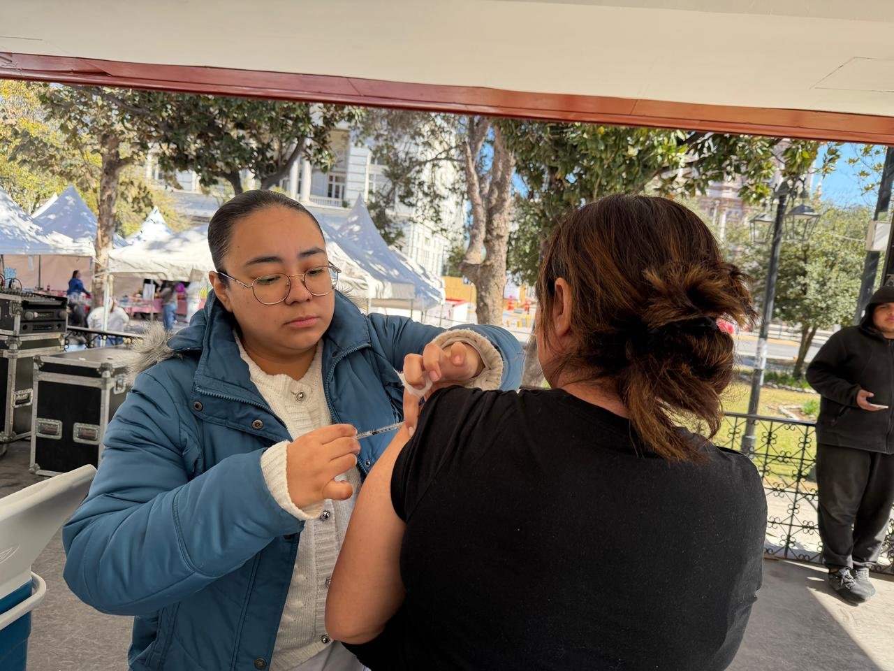 En coordinación con el municipio de Monterrey, la jornada tuvo lugar en un módulo instalado en la explanada de la Plaza Zaragoza donde se aplicaron mil vacunas contra el sarampión y rubeola y alrededor de 750 para prevenir la influenza.