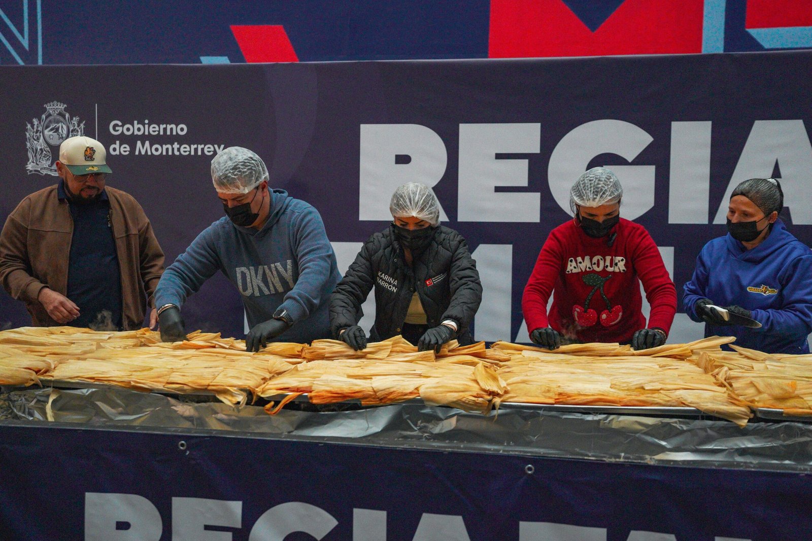 Como atractivo especial, se presentó un tamal gigante de un metro por 4.30 metros, con un peso superior a los 300 kilogramos, elaborado para alimentar a más de 600 personas. El platillo fue preparado con guiso tradicional de puerco con chile colorado, a cargo del equipo Grill Team.