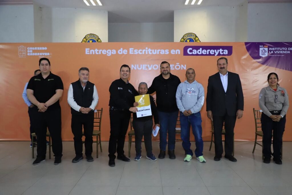 “El Instituto de la Vivienda de Nuevo León y Fomerrey han beneficiado a más de 600 familias mediante la entrega de escrituras, la asignación de nuevos lotes y la regularización de la tenencia de la tierra. Además, por instrucción del Gobernador Samuel García, seguiremos trabajando en Cadereyta para beneficiar a más de 500 familias adicionales con un nuevo fraccionamiento, la cancelación de hipotecas y la emisión de más escrituras”, señaló el funcionario.