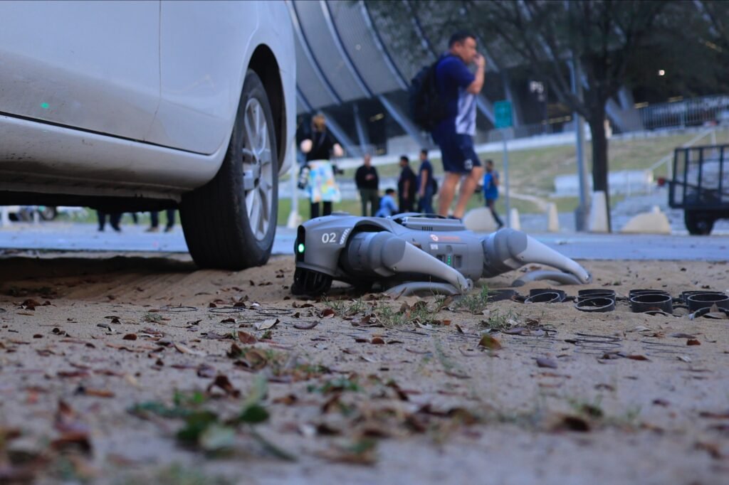 Los cuatro perros robots con los que cuenta el Municipio son manejados por elementos de la Secretaría de Seguridad y Protección Ciudadana de Guadalupe, quienes ejecutaron recorridos preventivos en el exterior del inmueble, cubriendo accesos y zonas de concentración.