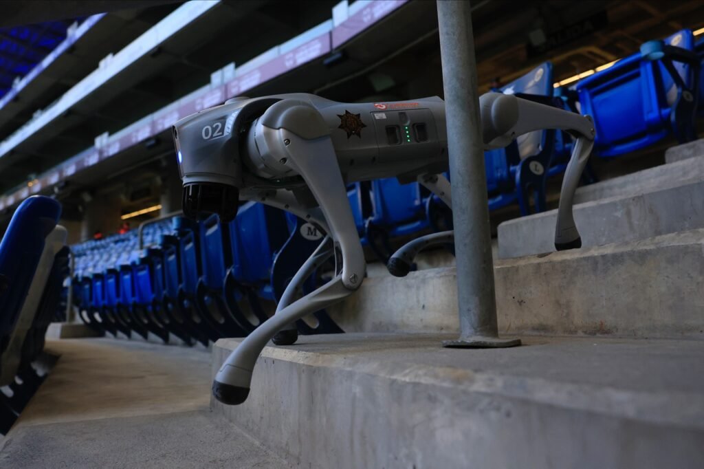 Las unidades robóticas K9-X del Gobierno de Guadalupe realizaron su primera intervención en un evento masivo internacional en el Estadio BBVA, durante el partido de futbol de los Rayados en el torneo de la Concachampions.