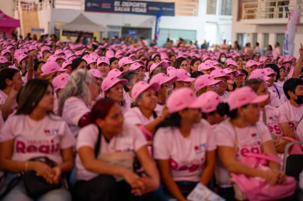 “Estoy muy contenta de estar aquí esta tarde, con todas ustedes, con el regreso de este programa tan bonito de la tarjeta Regia Plus que hoy es una realidad porque Adrián siempre cumple”, señaló.