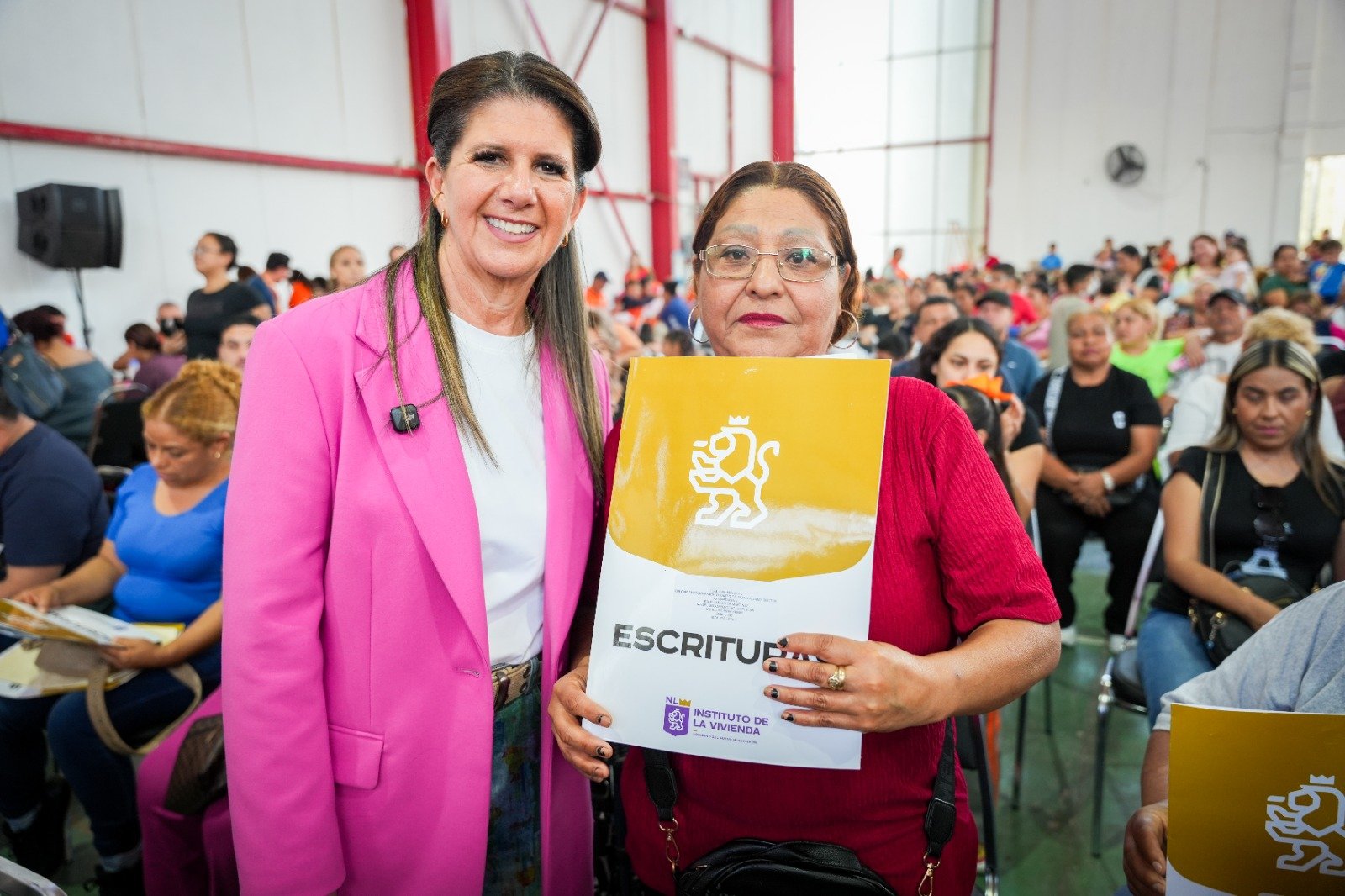 La Secretaria de Igualdad e Inclusión, Martha Herrera, y el Director General del Instituto de la Vivienda de Nuevo León, Eugenio Montiel Amoroso, encabezaron la entrega de escrituras a familias de Monterrey, municipio que, por su importancia y densidad poblacional, se incorpora al avance estatal en regularización patrimonial.