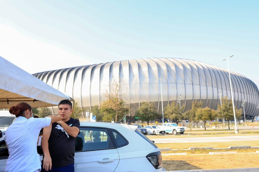 Durante el primer día de vacunación masiva en el Estadio BBVA, personal de la Secretaría de Salud del Municipio de Guadalupe aplicó más de 5 mil dosis contra el sarampión en coordinación con el Estado.