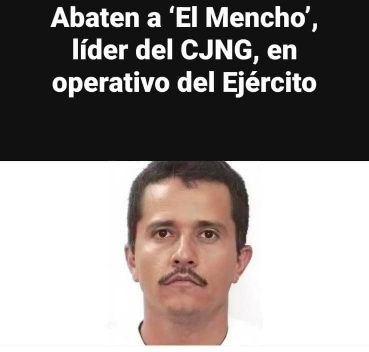 Nemesio Oseguera Cervantes, alias ‘El Mencho’  y líder del Cártel Jalisco Nueva Generación (CJNG), fue abatido durante un operativo de fuerzas federales que buscaban detenerlo en Jalisco, informó la Secretaría de la Defensa Nacional (Defensa).