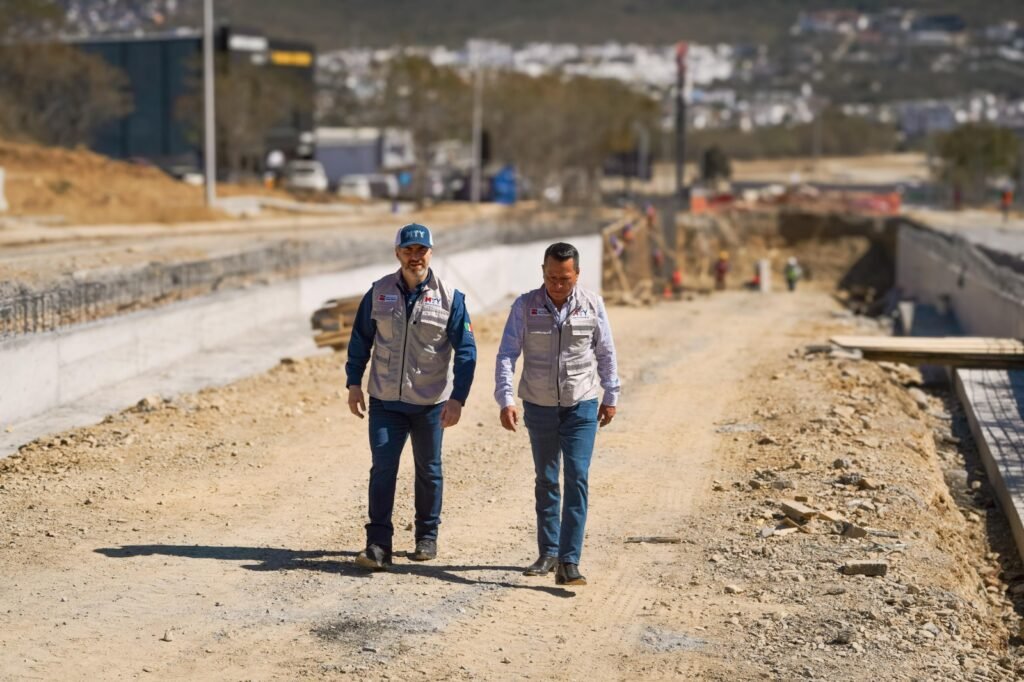 El alcalde de Monterrey, Adrián de la Garza supervisó el avance general del 73 por ciento que lleva la construcción del Circuito Vial Huajuco en la zona sur de la ciudad.