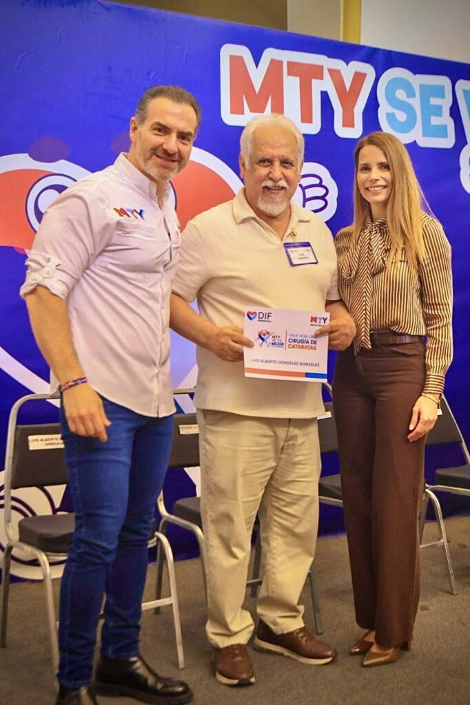 El alcalde Adrián de la Garza y su esposa, la presidenta del DIF municipal, Gaby Oyervides, encabezaron el arranque de esta iniciativa con la entrega de vales para las intervenciones que se realizarán en coordinación con el Centro Oftalmológico Club de Leones Internacional.