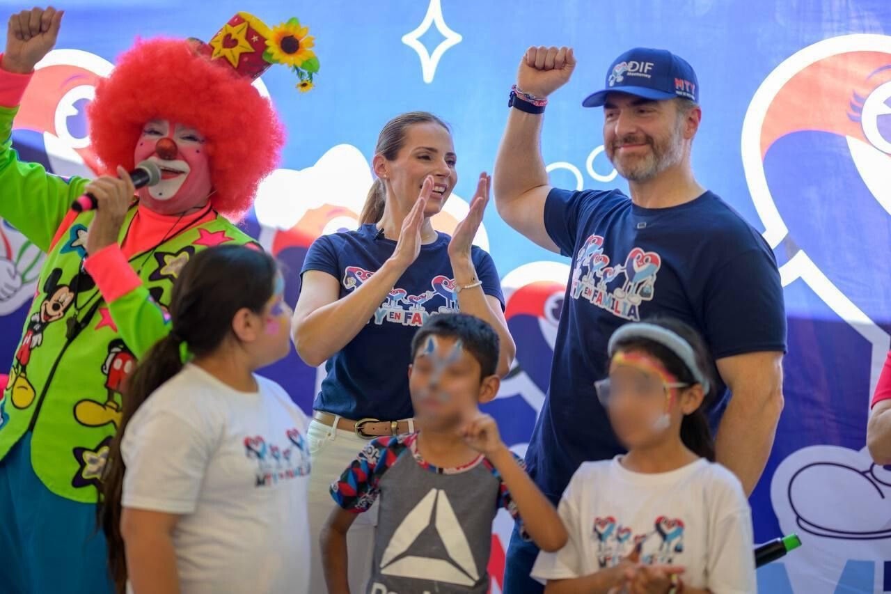El alcalde Adrián de la Garza, acompañado de su esposa Gaby Oyervides, presidenta del DIF Monterrey, encabezó el evento en el Parque España, donde convivió con los asistentes y participó en actividades recreativas.