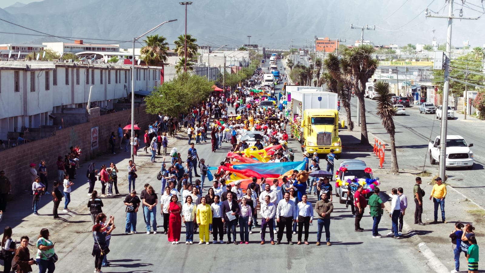 El alcalde de García, Manuel Guerra Cavazos, acompañado de su esposa, la presidenta honoraria del DIF municipal, Ana Paula Ríos Garza, encabezó el desfile conmemorativo por el 220 aniversario del natalicio de Benito Juárez y el inicio de la primavera, en el que participaron 25 contingentes que recorrieron 2.5 kilómetros por calles de las colonias Hacienda del Sol, Villas de Álcali y Héroes de Capellanía, durante dos horas y media.