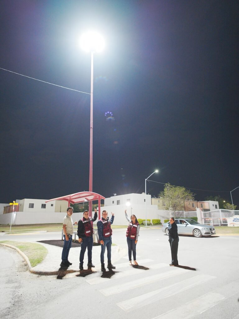 Asimismo, lideró el encendido de 10 Mega Torres de Luz en los accesos a la colonia Mitras Poniente, dando cumplimiento a un compromiso asumido con la ciudadanía para mejorar las condiciones de iluminación y seguridad en la zona.