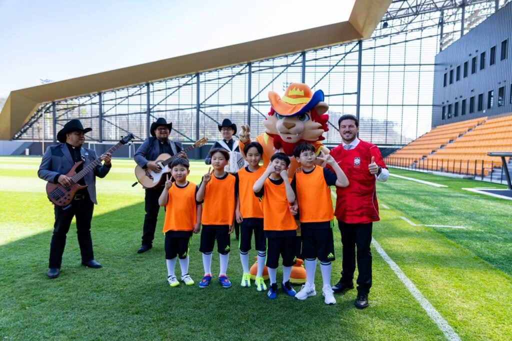 “Nos seguimos preparando para ser la mejor sede mundialista. Visitamos el Cheonan Football Center, donde entrena la Asociación de Fútbol de Corea, los Tigres de Corea. Hasta nos aventamos una tanda de penales junto a jóvenes deportistas y mi compadre Leo.