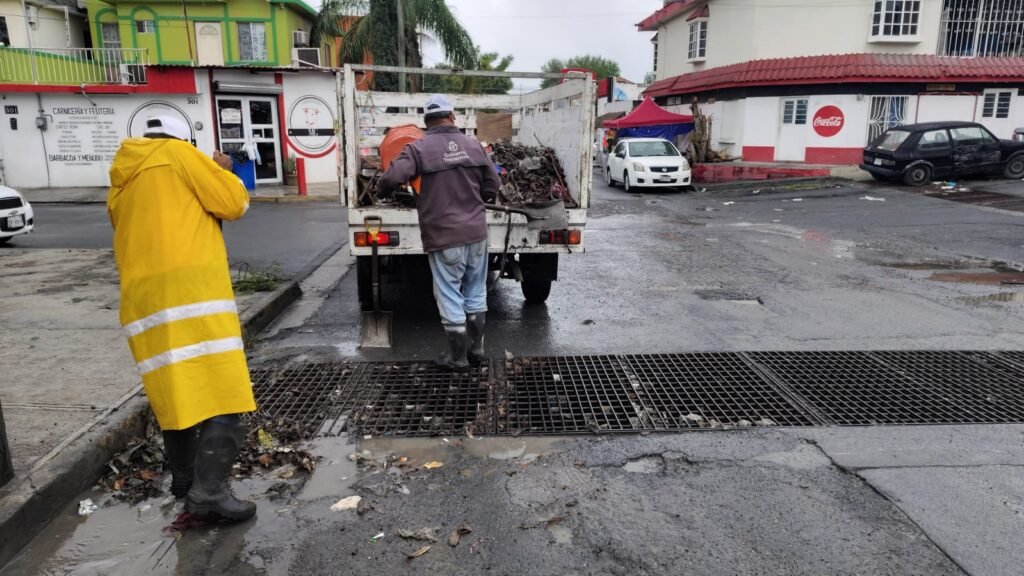 Personal de la Secretaría de Servicios Públicos se desplegó en distintos sectores del municipio, priorizando zonas vulnerables, para mantener despejadas las alcantarillas y asegurar el correcto flujo del agua, evitando encharcamientos severos y posibles afectaciones en viviendas, vialidades y comercios.