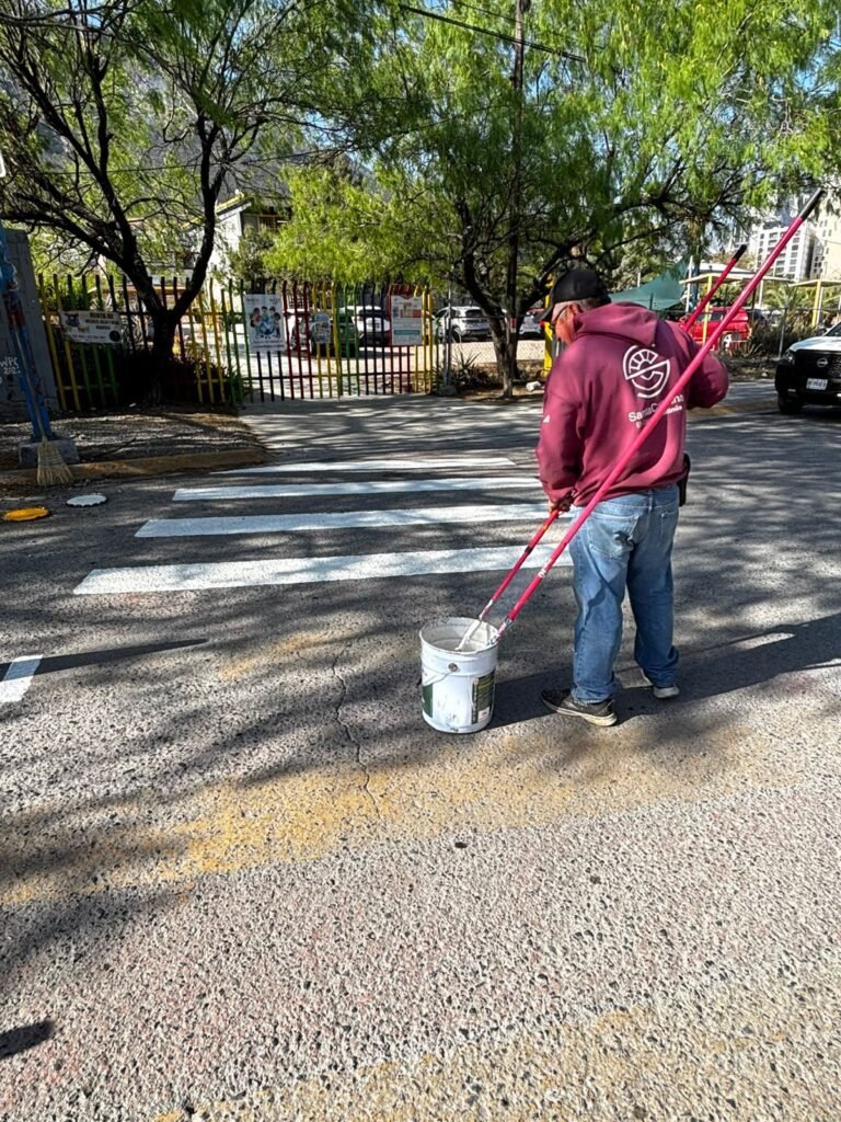 De manera paralela, cuadrillas de la Secretaría de Servicios Públicos realizaron trabajos de mantenimiento en los exteriores de diversos planteles educativos, que incluyeron pinta de señalética vial en accesos, retiro de basura y ramas, así como labores de deshierbe.