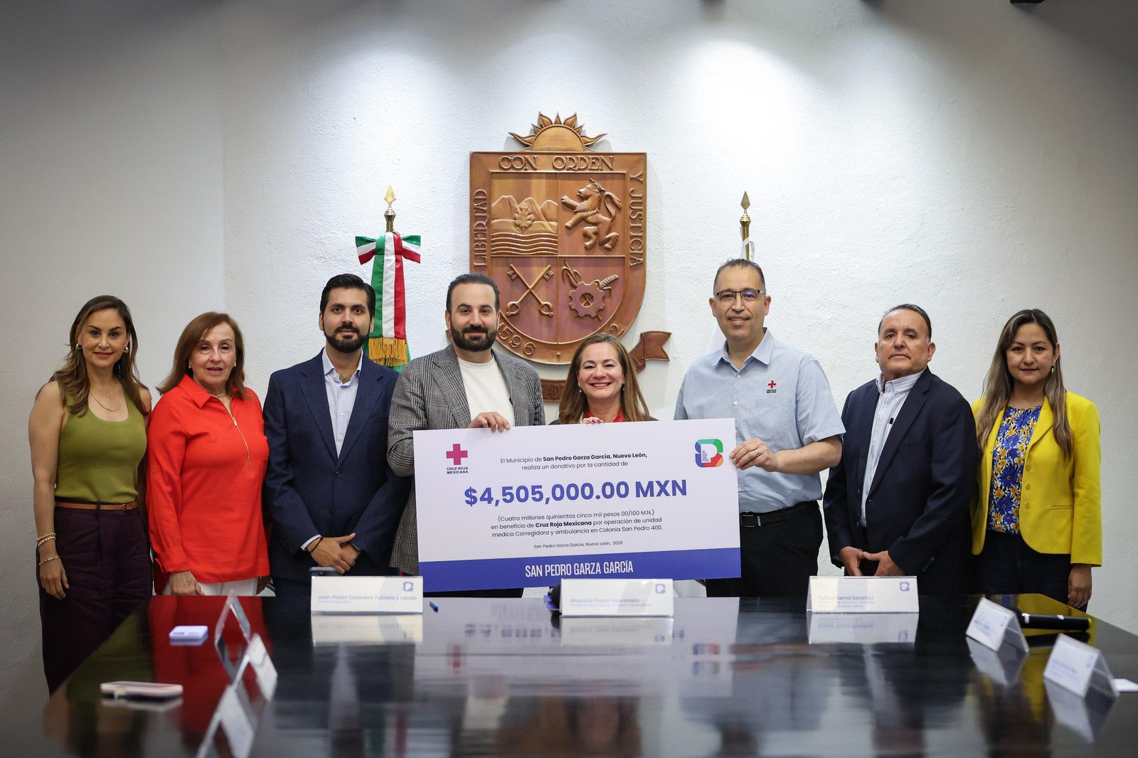 El Municipio de San Pedro Garza García, encabezado por el Alcalde Mauricio Farah Giacomán, realizó la entrega de un donativo por más de 4 millones 505 mil pesos a la Cruz Roja Mexicana, con el objetivo de fortalecer su operación y garantizar la atención de emergencias las 24 horas, todos los días del año.