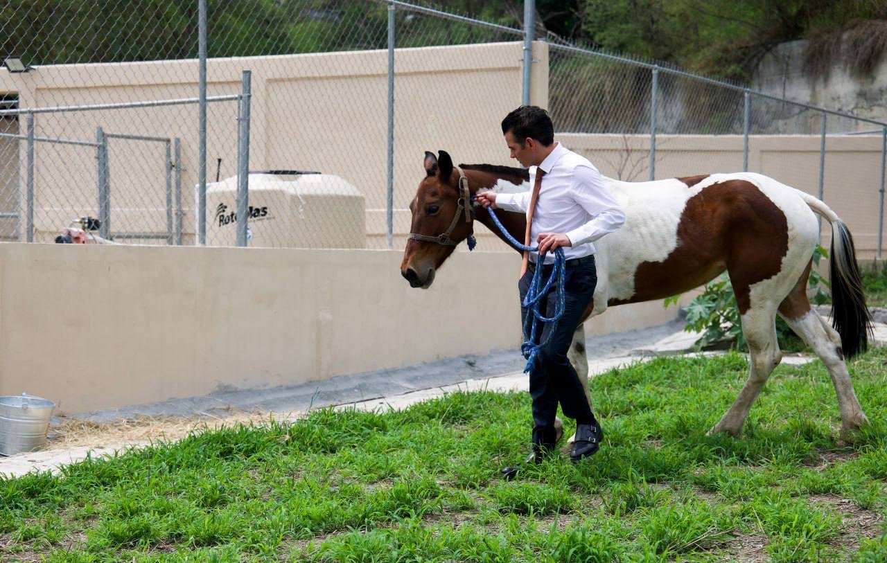 El Secretario General de Gobierno de Nuevo León, Miguel Ángel Flores Serna, aseguró una vida digna y un mejor futuro para “Manchas”, la yegua que fue rescatada del maltrato animal el pasado 14 de abril, en calles del municipio de Monterrey.