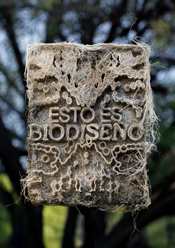 Acerca de la naturaleza del material, la autora reflexionó sobre la ventaja de que los biomateriales sean efímeros, comparándolos con la corta vida útil de los impresos comerciales. Destacó que, a diferencia del plástico, estos productos devuelven valor a la tierra al final de su ciclo.