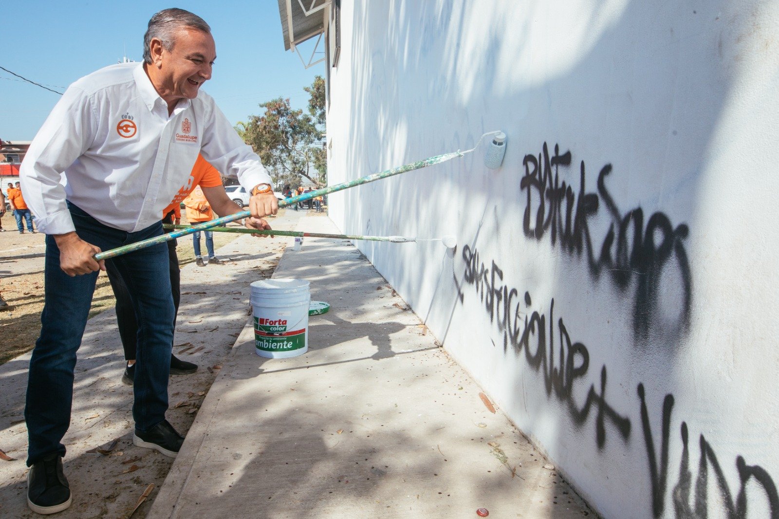 “Así que, a limpiar Guadalupe, ayúdenos a hacer conciencia con los vecinos de no tirar basura, de que cuando haya una luminaria apagada se reporte para encenderla”, expresó el Alcalde.