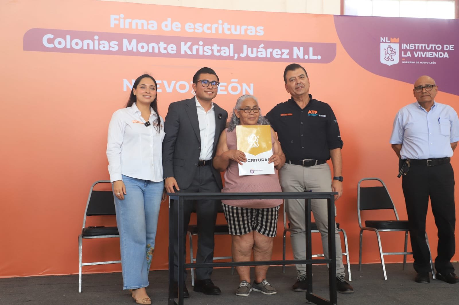 Luego de más de 30 años de espera, familias de las colonias Monte Kristal, en el municipio de Juárez, Nuevo León, comenzaron a recibir certeza jurídica sobre su patrimonio mediante la ratificación de sus escrituras.